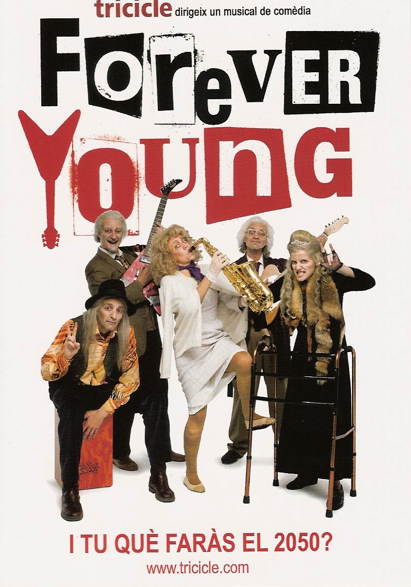 El Tricicle presenta su nuevo musical «Forever Young» en el Teatre Poliorama. Una obra de culto del teatro europeo, en la que sus personajes se ponen en la piel de ellos mismos, 40 años más viejos y residiendo en un asilo, pero con la vitalidad de un adolescente. Mientras su enfermera pretende animarlos con canciones infantiles, ellos aprovechan su ausencia para despertar su espíritu más rockero interpretando clásicos de la música popular moderna.