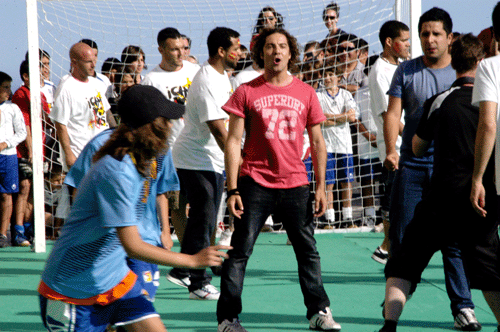 Bisbal, que mostró sus buenas dotes para el fútbol, se mostró muy atento, a pesar de las pequeñas medidas de seguridad, y muy sencillo en su atuendo con una camiseta y unos vaqueros.