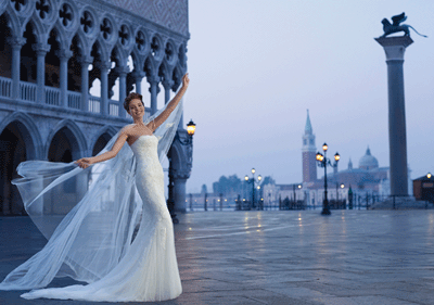 Venecia, conocida como la ciudad de los canales, ha sido la localización escogida para la realización de las fotografías. Los rincones más románticos y emblemáticos de la capital del Véneto han servido como escenario para captar las imágenes y han aproximado los vestidos de la colección a un sensible, pasional y cautivador ambiente.