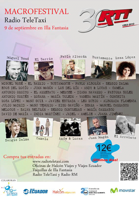 Aquest proper diumenge 9 de setembre, Radiotelexi celebrarà l’acte central del seu 30è aniversari amb un macro festival a Illa Fantasia, on actuaran estrelles i grups molt coneguts per tots nosaltres com Rosa, Juan Magan, Miguel Bosé, India Martinez, El Barrio, El Arrebato, Andy & Lucas, Camela, Sergio Dalma… i un llarg etcetera.