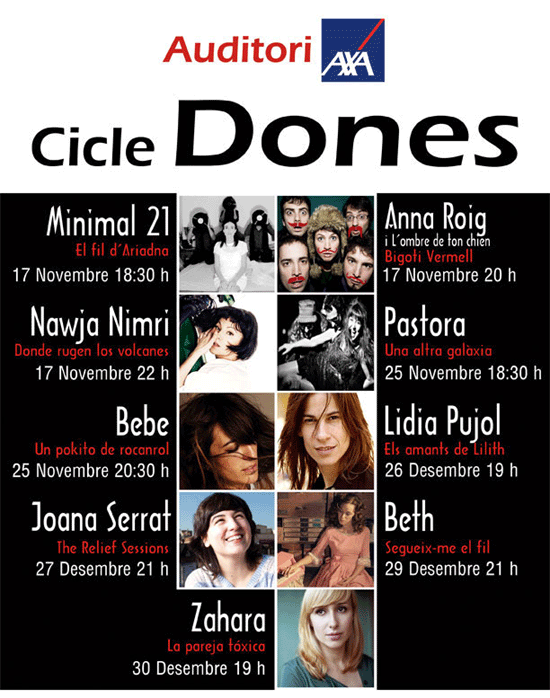 El proper 17 de Novembre comença el 1er. Cicle Dones a l’Auditori Axa. Un Cicle de música on tenen cabuda una sel-leccio de les millors les veus femenines del nostre panorama musical actual.