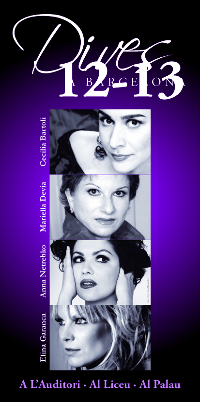 L’Auditori, el Gran Teatre del Liceu i el Palau de la Música Catalana presenten a Barcelona les quatre grans dives del món de l’òpera i del bel canto del moment: Cecilia Bartoli, Mariella Devia, Anna Netrebko i Elīna Garanča. Quatre oportunitats úniques que tindran lloc entre els mesos de desembre i gener per sentir les veus més cotitzades de l’actualitat musical amb la possibilitat de gaudir de descomptes per la compra de més d’un espectacle.