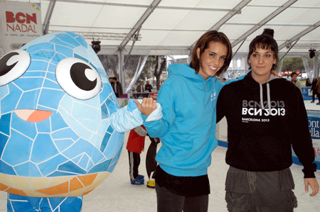 El dúo olímpico de natación sincronizada español, Andrea Fuentes y Ona Carbonell, que ganaron brillantemente la medalla de plata en los Juegos Olímpicos de Londres en la disciplina de duos, han patinado esta mañana en la Plaça de Catalunya para promocionar los Mundiales de Natación de Barcelona 2013, que será sin duda alguna uno de los grandes acontecimientos del año.