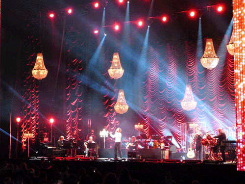 Habría tantas cosas que decirles de este “muñequito lindo de cabellos de oro” –interpretó ‘Te quiero, dijiste’ de María Grever- que con dos horas, que duró el concierto, no tendría suficiente. Fueron 24 temas, algunos como ‘Al Andalus’ brillaron como la ‘Luna’, otros como ‘Sombra y Luz’ de Alejandro Sanz resultaron inéditos. Y qué decir de la puesta en escena: majestuosa recreación del Real que eclipsó al Palau. Seis enormes lámparas de araña de cristal, solemnes candelabros, elegante cortinaje veneciano y sofisticados juegos de luces formaban un imponente cuadro escénico. Todo enmarcado con un enorme marco lumínico de leds que reproducía algunos motivos de sus letras. Sortilegio de belleza a la altura de temas tan bellos como ‘En un rincón del alma’ de Alberto Cortez. El repertorio fue un recorrido por el cancionero popular de diferentes épocas y por los temas que han entronado a Bisbal como uno de los reyes del pop latino. ‘Como la primera vez’ que sonó ‘Ave, María’ su corazón sonrió durante todo el concierto.