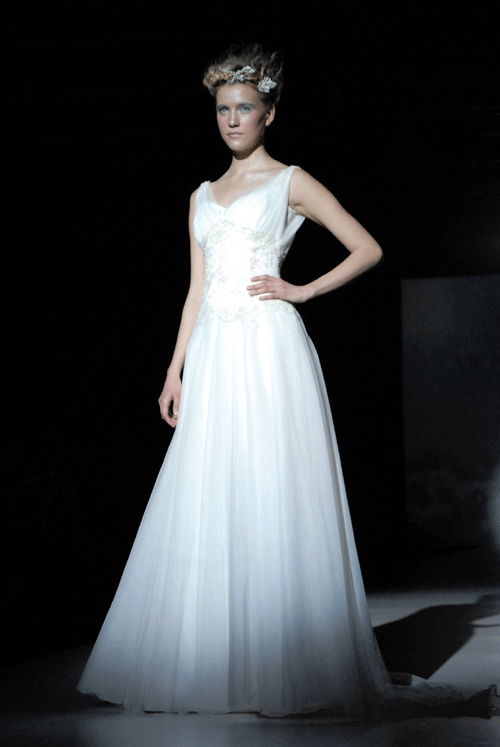 Una colección que presenta líneas depuradas que innovan en los cortes, más sinuosos que de costumbre, para una novia “feliz, romántica, que esté brillante el día de su boda” como afirman los diseñadores. Los sevillanos también se han basado mucho en el efecto de tridimensionalidad; como ellos explican: “hemos trabajado mucho sobre chantilli y con brocados de guipur”.