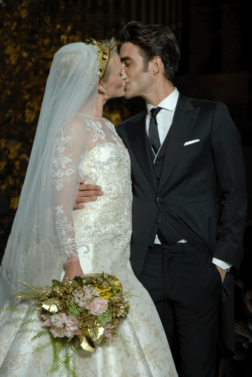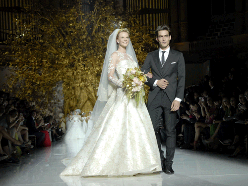 Enmedio de la gran expectación que acompaña los desfiles de Pronovias, así sucedió de nuevo en la presentación 2014, en el MNAC de Montjuic y que ponia el punto final a la Pasarel·la Gaudí Núvies «Barcelona Bridal Week«. El desfile de Pronovias este año giró alrededor del concepto “First Love”, y reunió a las modelos más destacadas del momento como las tops Anne Vyalistina, Valentina Zeliaeva, Josephine Skriver o Magdalena Fracowiack, que podemos ver habitualmente en los desfiles de los Angeles de Victoria’s Secret y el modelo Jon Kortajarena que fue el encargado de cerrar el desfile con un final romántico que sorprendió al público, acompañado de la modelo Anne Vyalistina.