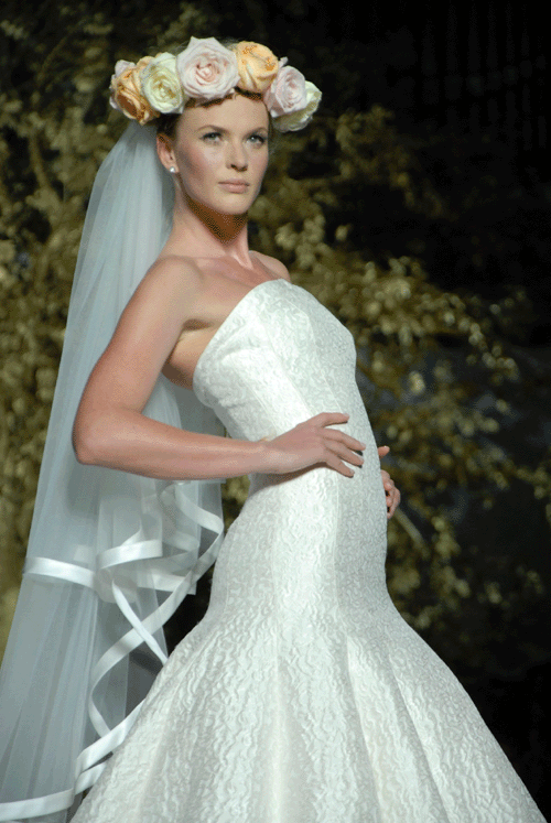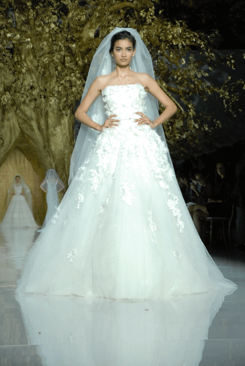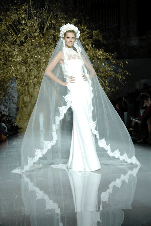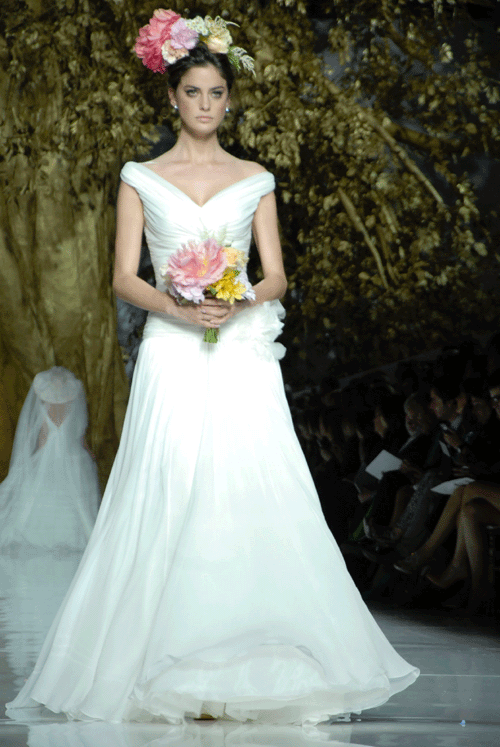 Los diseños van des de cortes sirena que aparecen entallados bajo la cintura hasta el clásico corte de cintura. En el terreno de los escotes, predominan los escotes V, el halter o el escote U. Las espaldas cubiertas con decorados de pedrería y sinuosas transparencias también cobran un protagonismo importante en esta colección.