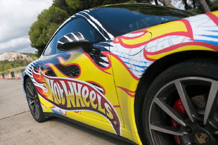 El piloto de Moto GP Jorge Lorenzo ha dejado las motos por un día para conducir un Hot Wheels (el Porsche 911) “a tamaño real”.
