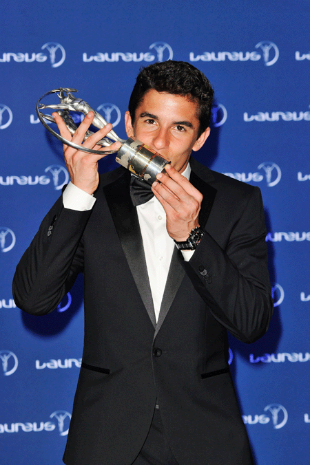 El español Marc Márquez recibió el Laureus Breakthrough of the Year Award tras convertirse en el campeón del mundo de MotoGP más joven de la historia, con 20 años y 266 días. También hizo historia al convertirse en el ganador más joven de un Gran Premio, el de Austin en abril, con 20 años y 63 días.