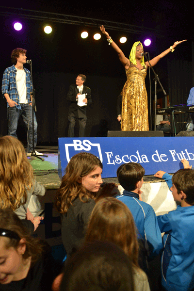 Lucrecia presentó el himno, el pasado domingo en una gran fiesta musical, celebrada en la Sociedad Recreativa El Retiro -que junto al Casino Prado es una de las sedes históricas del Festival de Cine Fantástico de Sitges, desde sus inicios-. A lo largo de la gala, en la que la Blanca iniciaba los actos de su aniversario, subieron al escenario cantantes y formaciones, entre los cuales se encontraban exjugadores de la Blanca, o padres y madres, como la misma Lucrecia y el cantante Antonio Orozco.