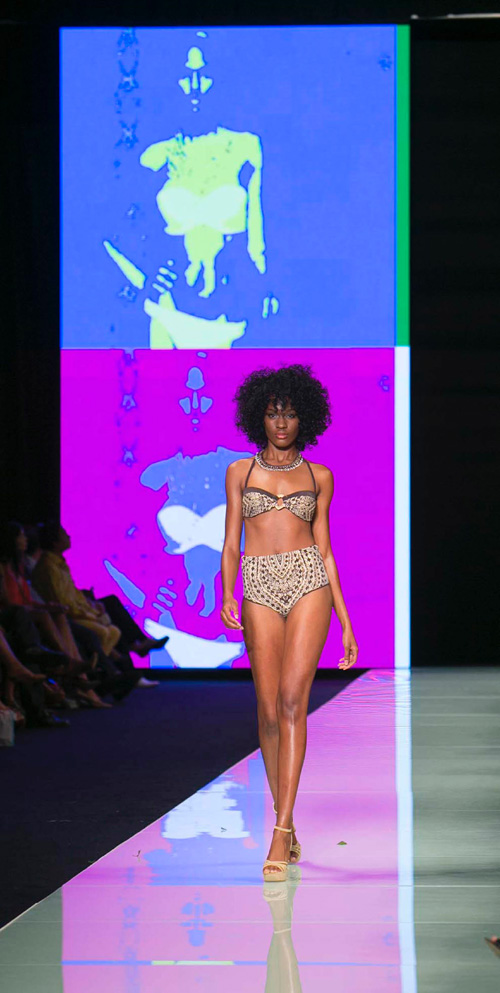 Su belleza iluminó la pasarela del Miami Convention Center, junto a otras modelos que también lucieron las prendas más elegantes y refinadas de la nueva colección beachwear. Muchas fueron las propuestas de bikinis y prendas de playa que se presentaron, de estilos diferentes que van desde un mood étnico, pasando por texturas brillantes hasta prendas bordadas a mano o coloridas propuestas inspiradas en Brasil.
