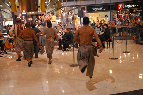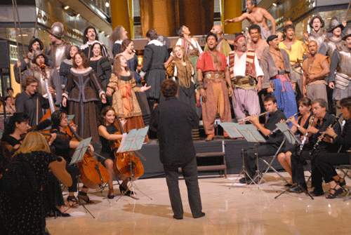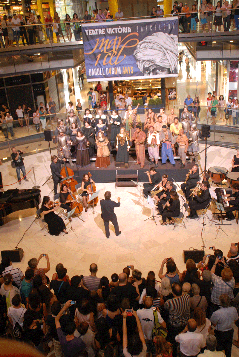 Per escalfar motors la companyia ha organitzat avui dimecres una acció sorpresa al metro de Bcn i el Centre Comercial Arenas de Barcelona en la que han participat 17 actors, 4 acròbates i una i una orquestra de 12 músics amb el mestre Albert Guinovart al piano.