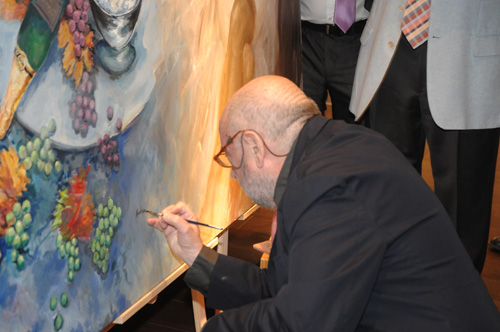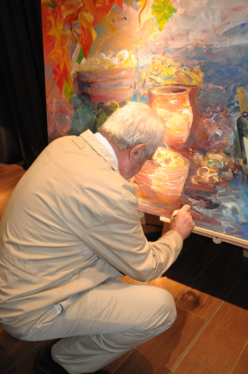 “Le Méridien Ra” tuvo la satisfacción de convertir el hall en el improvisado estudio de los seis afamados artistas pintores Emilia Castañeda, Josep Cruañas, Jordi Andreu Fresquet, Jordi Rollán, Lluis Roura y Bener Sasanedas que han creado conjuntamente un cuadro anomenat “ Cent anys de cava i art” que ofrecen como homenaje a la firma FXT con motivo de su Centenario. El acto se celebró el pasado viernes.