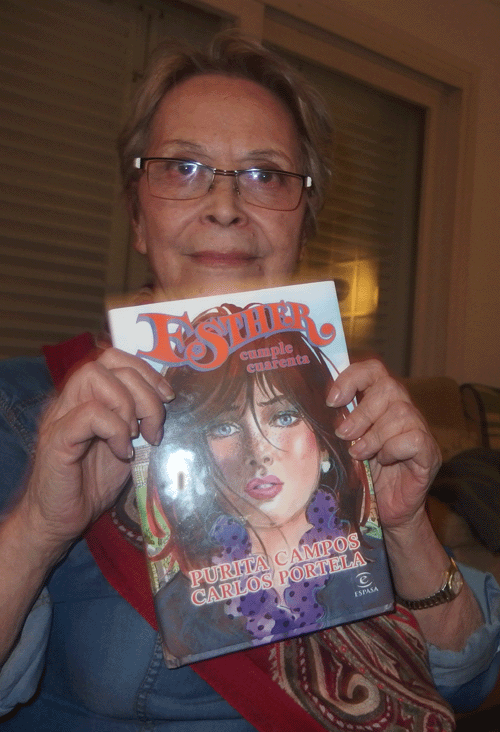En el mundo del cómic. a nivel nacional e incluso internacional, uno de los grandes referentes es Purita Campos, ilustradora de “Esther”, un personaje entrañable que vivía mil y una aventuras durante más de veinte años, protagonizadas por historias de la adolescencia. Ahora ha vuelto con fuerza en forma de novela “Esther cumple cuarenta” –Espasa- de Carlos Portela y con ilustraciones de Purita Campos. En la novela veremos a Esther con sus amigas de siempre, su amor platónico Juanito, y nuevos personajes.