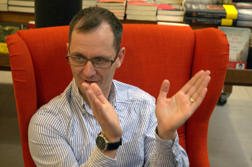 No es la primera vez que vengo,. Considero que es una ciudad muy interesante, y posiblemente sitúe alguno de mis libros. Hay localizaciones interesantes como el Barrio Gótico, que me encanta, y que considero que es un espacio bastante oscuro
