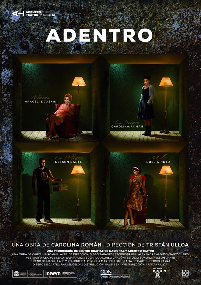 Tras el éxito de la obra “En Construcción”, el equipo TRISTÁN ULLOA – CAROLINA ROMÁN – NELSON DANTE vuelve a unirse para presentar en esta ocasión la obra ADENTRO, una producción del Centro Dramático Nacional y Adentro Teatro que se estrenará el próximo 15 de Abril y estará hasta el 17 de Mayo en la Sala de la Princesa del CDN (Centro Dramático Nacional). Con dirección de Tristán Ulloa y texto de Carolina Román, el reparto lo componen los reconocidos actores Araceli Dvoskin, la propia Carolina Román, Nelson Dante y Noelia Noto.