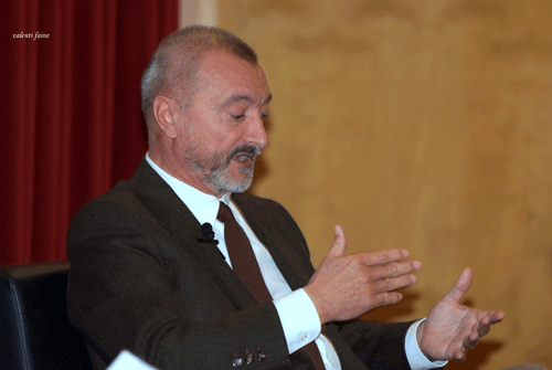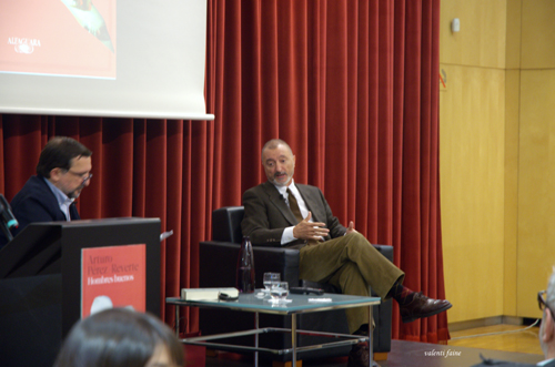 Fiel a su cita con Barcelona, y acompañado del importante éxito de su nuevo libro “Hombres buenos” –Alfaguara- que ya lleva cinco ediciones, desde su salida a la venda hace poco más de un mes, el escritor Arturo Pérez-Reverte, habló este pasado jueves en el auditorio de Random House-Mondadori, en Barcelona, de los pormenores de su publicación y muchas cosas más en una charla didáctica y distendida que mantuvo con el periodista Sergio Vila-Sanjuán.
