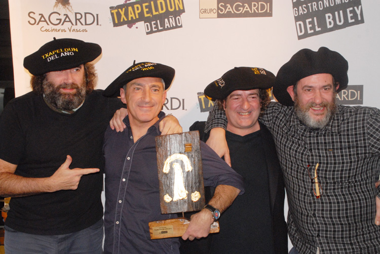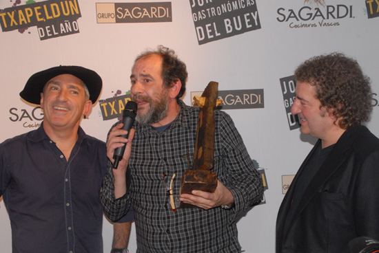 El Grupo de restauración Sagardi ha otorgado la distinción de ‘Txapeldun del Año’, en su quinta edición, a uno de los periodistas de investigación más relevantes y uno de los reporteros más prestigiosos de la televisión del momento, Jon Sistiaga, por su comprometida, valiente e independiente labor periodística. El presidente del Grupo, Iñaki Lz. de Viñaspre, le ha hecho entrega de la tradicional Txapela vasca – con la que se corona al campeón en Euskadi – y una pieza escultórica del artista vasco Juan Gorriti, creada especialmente para la ocasión.