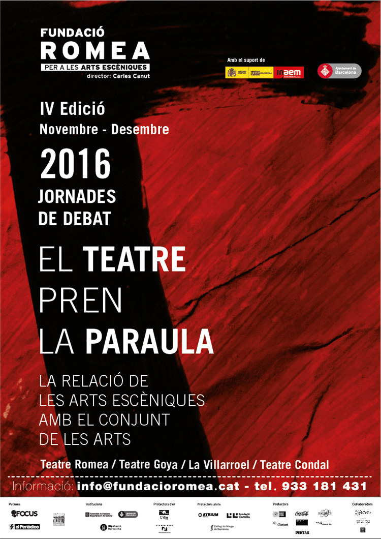 El pròxim 3 de novembre, la Fundació Romea per a les Arts Escèniques inaugura nova temporada d’El teatre pren la paraula, un cicle d’activitats que pretén oferir un fòrum de debat al voltant de les formes i relats que concerneixen el teatre, obert a personalitats destacades de l’àmbit de la cultura.