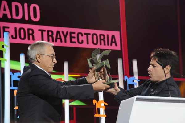El actor Pedro Casablanc recogió el Ondas al mejor intérprete de ficción masculino nacional y que después de dedicar el premio a los actores en paro comentó que: «Me siento abrumado, agradecido y con pudor».