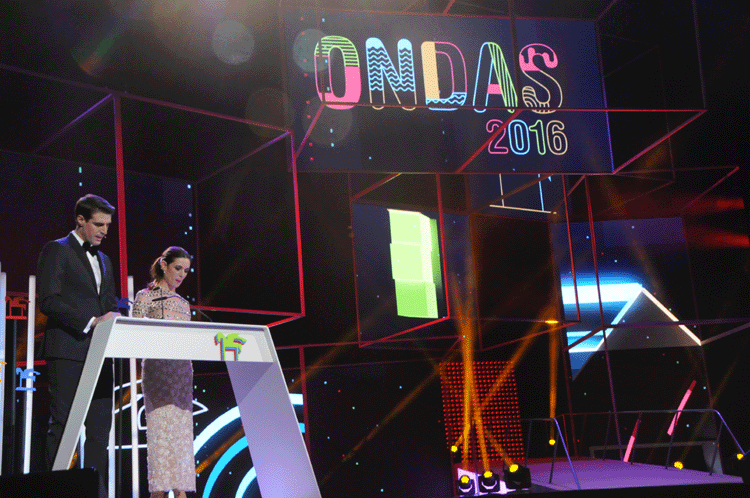 Por segundo año consecutivo -un hecho historico-, la serie «El Ministerio del Tiempo» de TVE, ganó el Ondas a la mejor serie nacional. Recogió el premio su creador, Javier Olivares, junto a algunos de sus actores, como Nacho Fresneda y Mar Saura.