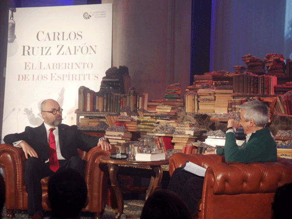 Precedido por música compuesta e interpretada por el autor y rodeado de montañas de libros cubiertos de cenizas, que recreaban la atmósfera mágica de El Cementerio de los Libros Olvidados, Carlos Ruiz Zafón se ha despedido del laberinto de historias y personajes que conforman el universo literario de la saga con “una sensación de paz y satisfacción del trabajo hecho y la ilusión de compartir lo que había soñado con los lectores”.