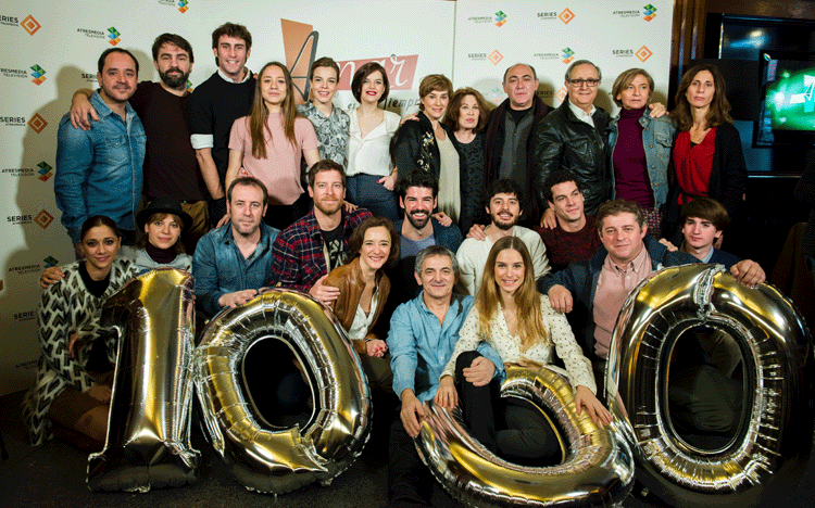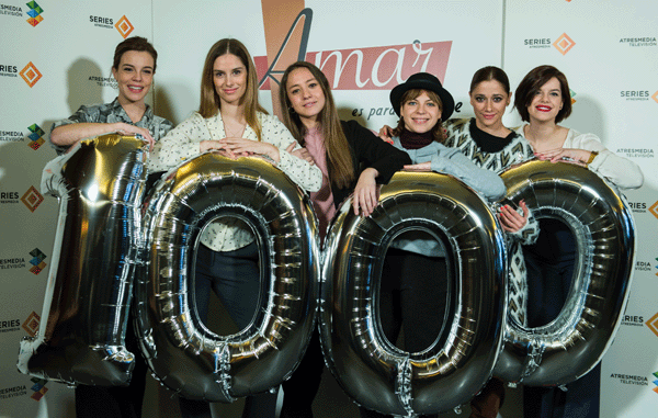 La serie ‘Amar es para siempre’, que emite de lunes a viernes Antena 3 en la sobremesa, se aproxima a los 1.000 capítulos como la serie líder de su franja. Para celebrarlo este pasado martes todo el equipo artístico de la serie celebró un encuentro con la prensa en una conocida cafetería de Madrid, y se proyectaron imágenes significativas de estos 1.000 episodios.
