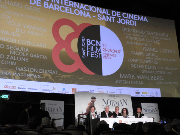 Barcelona se llenó de glamour este viernes con la inauguración del FESTIVAL INTERNACIONAL DE CINE DE BARCELONA-SANT JORDI (BCN FILM FEST) que se celebra entre el 21 y el 28 de abril en los Cinemes Verdi del barrio de Gràcia de Barcelona. Y es que el film inaugural Norman, el hombre que lo conseguñia todo, dirigido por Joseph Cedar, está protagonizado por el mítico actor de Hollywood Richard Gere, que ha venido a Barcelona, acompañado del director Joseph Cedar. En medio de una gran expectación el actor celebró un fotocal en el Hotel Casa Fuster y una multitinària rueda de Prensa en los Cines Verdi, que acogieron por la noche la premiere española del filme “Norman”.