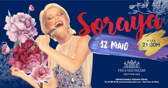 Finca Mas Solers serà l’escenari, el proper divendres 12 de maig, de l’actuació d’una de les grans cantants del panorama musical estatal; Soraya. La cantant extremenya arriba a Finca Mas Solers amb més força que mai en el que serà un dels seus primers concerts després de la seva recent maternitat. Una nit inoblidable, en format de sopar + espectacle, en la que Soraya repassarà els seus gran èxits en acústic i obsequiarà als assistents amb un espectacle ple de matisos i sorpreses inèdites.