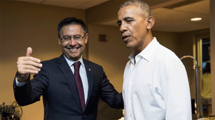 El president del FC Barcelona, Josep Maria Bartomeu, ha mantingut una trobada amb l’expresident dels Estats Units, Barack Obama, convidat d’honor en el partit que ha enfrontat l’equip blaugrana i el Manchester United a la International Champions Cup. Bartomeu i Obama han coincidit, durant el descans del partit, en una de les llotges privades del FedExField Stadium.