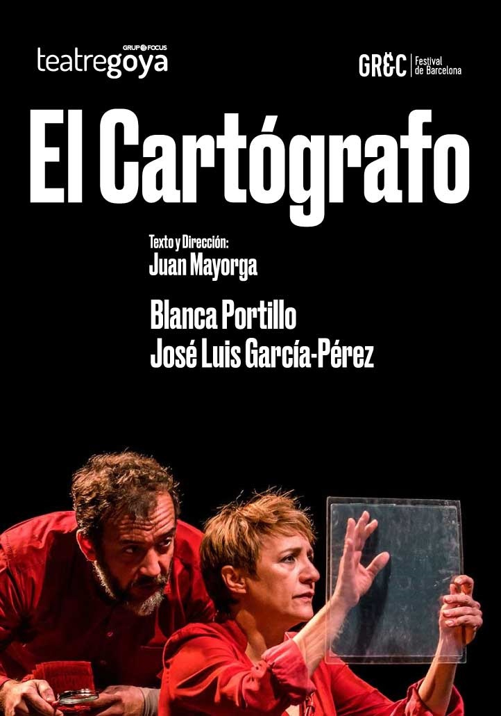 A partir del 3 de julio y hasta el 21 de julio el Teatre Goya presenta El cartógrafo, un texto escrito y dirigido por Juan Mayorga que se detiene en el pasado para luchar contra la dictadura del presente. Una producción de Avance Producciones Teatrales, Entrecajas Producciones Teatrales y García-Pérez Producciones, que se podrá ver en el Teatre Goya durante tres semanas, en la programación del Grec 2019 Festival de Barcelona. La obra está protagonizada por los actores Blanca Portillo y José Luis García-Pérez.