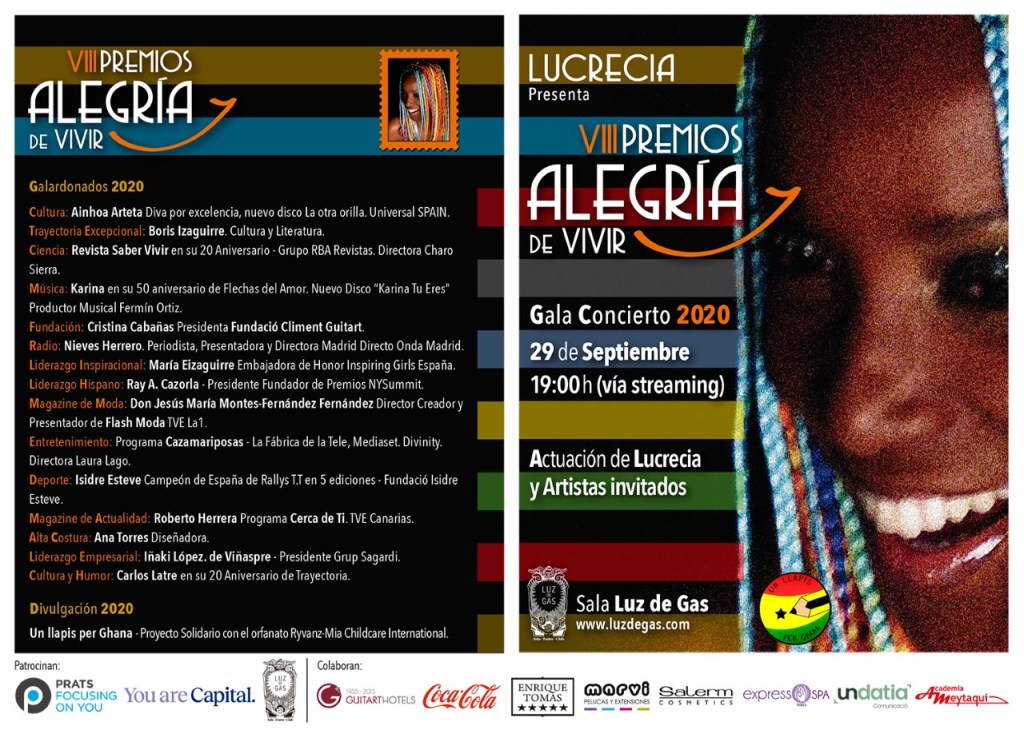 Todo está a punto para celebrar en streaming, los prestigiosos Premios Alegría de Vivir, en su VIII edición 2020, adaptados a un formato Online necesario y seguro en este momento.