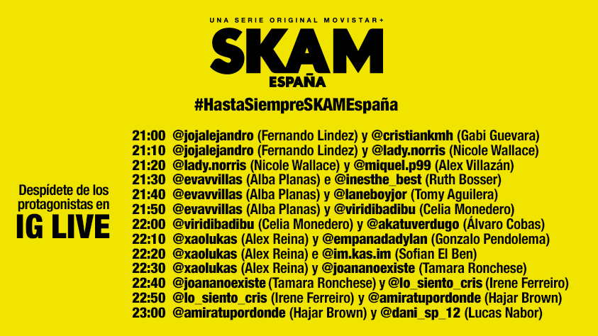 Con motivo del final de serie, el cast al completo tomará el control de los perfiles de Instagram de sus personajes para celebrar encuentros virtuales con los seguidores de la serie a partir de las 21:00h.