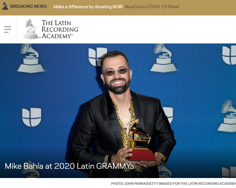 Con el indicio de un trabajo de alta calidad y hecho con el corazón MIKE BAHÍA recibió el premio GRAMMY LATINO como MEJOR NUEVO ARTISTA por parte de LA ACADEMIA LATINA DE ARTES Y CIENCIAS DE LA GRABACIÓN, título que certifica su impecable labor entregándole al público canciones frescas y fieles a su estilo distintivo, donde prima la coherencia entre su pasión y la responsabilidad en el proceso creativo y de producción.