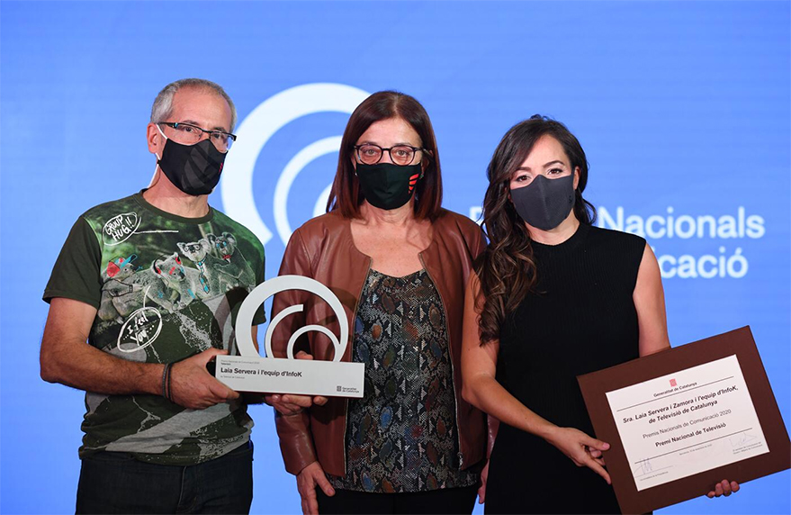 Aquesta dijous 10 de desembre a la tarda ha tingut lloc, al Palau de Pedralbes de Barcelona, l’acte de lliurament dels Premis Nacionals de Comunicació 2020, presidit per la consellera de la Presidència, Meritxell Budó. La periodista Laia Servera, editora i presentadora habitual de l’informatiu “InfoK”, i la resta de l’equip d’aquest programadel canal Super3, han estat distingits amb el Premi Nacional de Comunicació en la categoria de Televisió. El guardó reconeix, especialment, la tasca que l’“InfoK” va fer durant l’inici de la pandèmia del coronavirus.