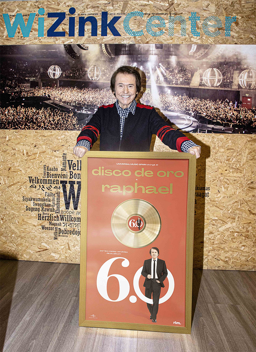 El sábado, momentos antes de salir al escenario, Raphael recibió de manos de Universal Music el Disco de Oro por las ventas de ‘Raphael 6.0’; trabajo presentado el 27 de noviembre y que se posicionó directo en lo más alto de las listas de venta