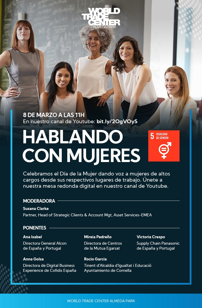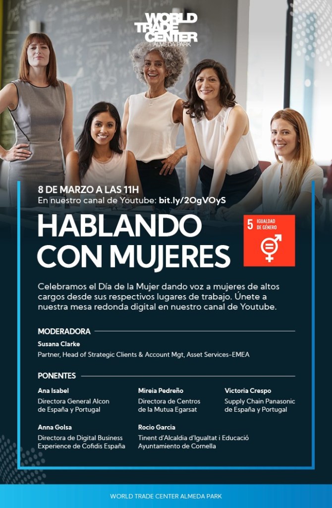 En el marco de la definición del plan estratégico2021-2022 WTC Almeda Park, ha incorporado como uno de los proyectos troncales la adhesión a los Objetivos de Desarrollo Sostenible (ODS) impulsados por la ONU y a fin de cumplir con el quinto objetivo, el lunes 8 de marzo de 11h a 12h, se realizará una mesa redonda donde se abordarán temas de actualidad en el marco del Día Internacional de la Mujer.