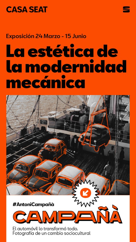 En este recorrido que ofrece la exposición por la historia del vehículo en nuestro país y los años centrales del siglo XX, SEAT ocupa un lugar protagonista. Esto se debe a la relación profesional y de amistad de Campañà con el ingeniero y fotógrafo José Ortiz Echagüe. El que también fue el primer director de SEAT le abrió las puertas de la nueva fábrica de la Zona Franca, ejemplo de modernidad e industrialización, y le permitió retratar algunos de los modelos más recordados de la compañía automovilística. Como fotógrafo de la marca, Campañà no solamente creó algunas de las imágenes publicitarias más icónicas de los primeros años de SEAT, sino que dirigió su mirada más allá, retratando cómo Cataluña y España pasaban del mundo rural a la rugiente y contradictoria modernidad mecánica y urbana.