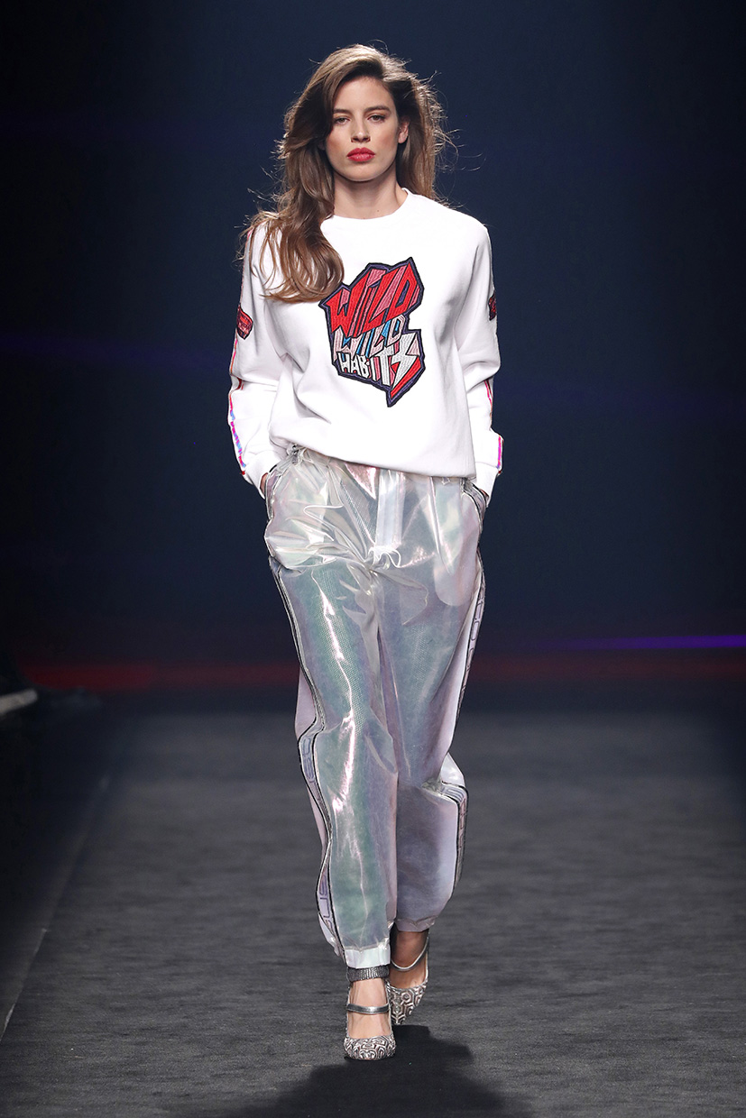 El sweatshirt evolucionado es la pieza clave de la propuesta en colores planos o con gráficas coloristas o animal print. De patrón oversize, se iluminan con bordados multicolores, patch de materiales técnicos brillantes y apliques brillantes. Estas sudaderas, ineludible signo de estos tiempos, se cubren con plumones técnicos de patrón muy oversize en tejidos tecnológicos transparentes que son otra de las apuestas para esta temporada. Multi logo, brillos técnicos y detalles de bordados decoran estas piezas para el invierno.