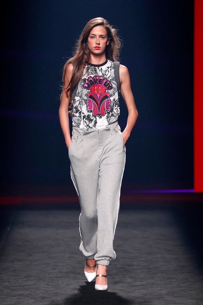 Y sobre la pasarela Custo Barcelona ha presentado por primera vez al completo la propuesta I am the Power, una colección con un mensaje firme de autoafirmación personal para resistir y superar situaciones difíciles. Una nueva forma de vestir que se apoya en una nueva conciencia y un mantra, I am the Power, que hay que repetirse para elevar la energía. Una silueta sexy y sugerente mezclada en un look sporty muy actual.