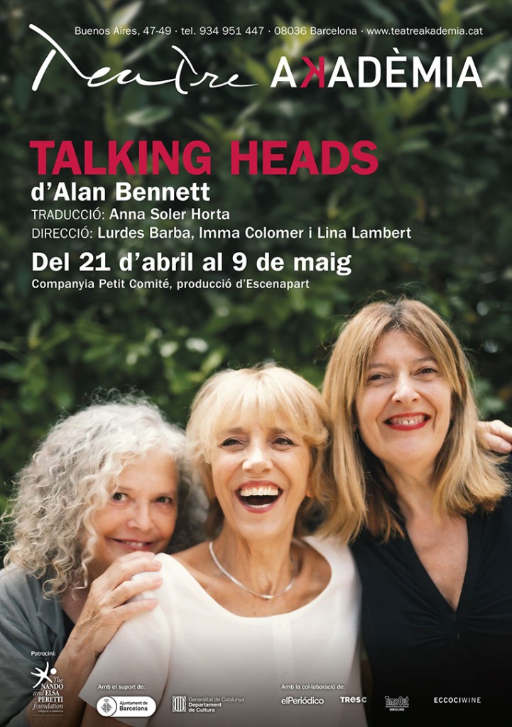 El Teatre Akadèmia de Barcelona estrena el pròxim dimecres 21 d’abril Talking heads, una sèrie de monòlegs que el dramaturg, guionista, novelista i actor britànic Alan Bennett va escriure originàriament per a la BBC entre 1988 i 1998. La popularitat que va assolir l’emissió d’aquestes peces, interpretades per actors de primer nivell, va motivar que es traslladessin també a la ràdio i al teatre. La versió teatral es va estrenar al Comedy Theatre de Londres el gener de 1992. El 2020, en ple confinament, la cadena pública britànica va recuperar aquests monòlegs en una versió actualitzada, que a l’estat espanyol va emetre la plataforma Movistar Seriesmanía.