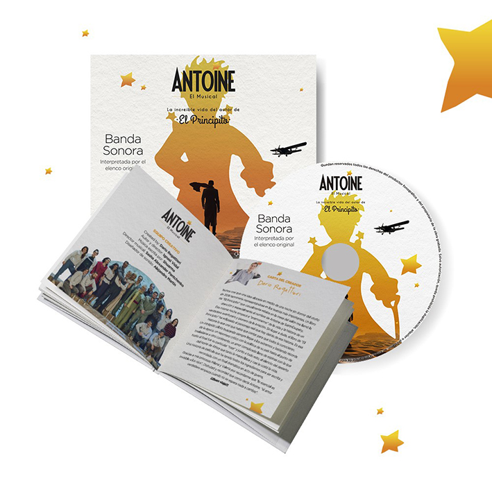 Las canciones nos trasladan a esta increíble historia en la que conocemos aquellos aspectos de la vida del autor que marcaron su personalidad, a través de esta nueva visión de su obra más importante, el clásico universal “El Principito”, escrito por Antoine de Saint-Exupéry, autor de quien trata el musical.