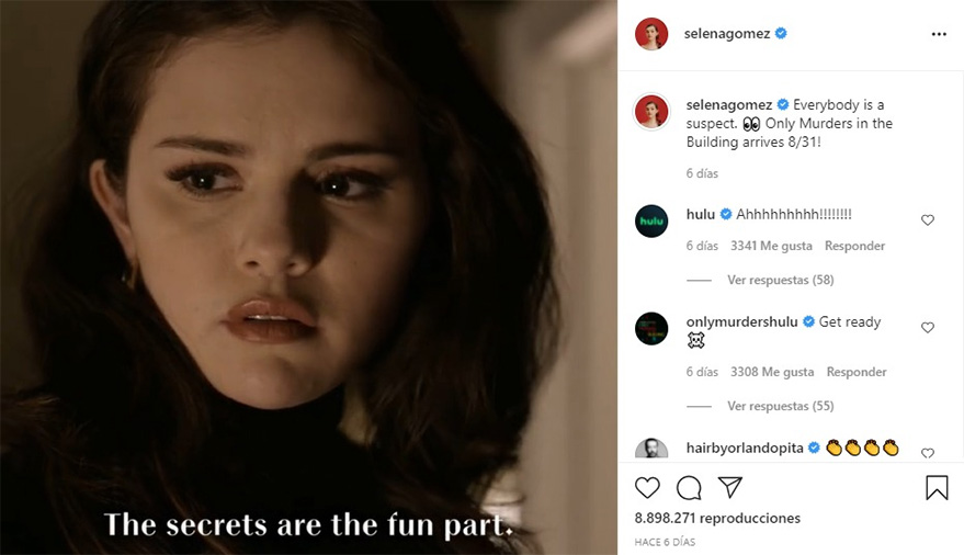 La segunda participación es en ‘Only Murders In The Building’ con su personaje de ‘Mabel’, además, contará con la actuación de Steve Martin y Amy Ryan que al igual que Selena compartirán una obsesión por los crímenes y asesinatos y de repente se verán envueltos en la misteriosa muerte de un vecino en su edificio de la ciudad de Nueva York. La seria se estrena el próximo 31 de agosto por la plataforma de streaming Hulu.