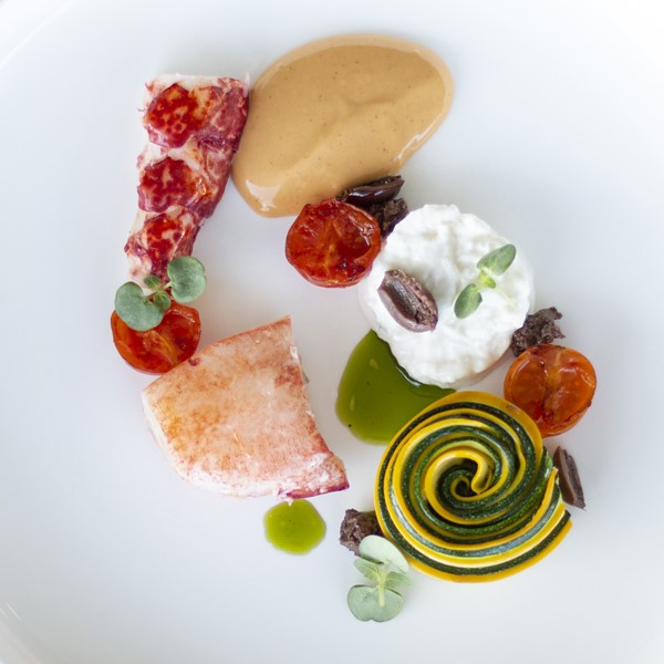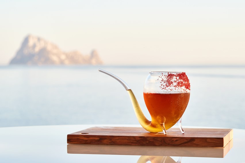 El menú desglosa tentadoras propuestas de pescado, marisco, carne y vegetales, para ser disfrutadas con una excelente bodega mientras el sol se funde con el mar con Es Vedrà en el horizonte. Platos que desvelan un sutil twist cítrico con el que al chef le gusta aderezar sus creaciones, en las que destacan ingredientes selectos como la gamba roja ibicenca, el pargo, el bogavante, el rodaballo, el hamachi, el cordero o la ternera lechal.