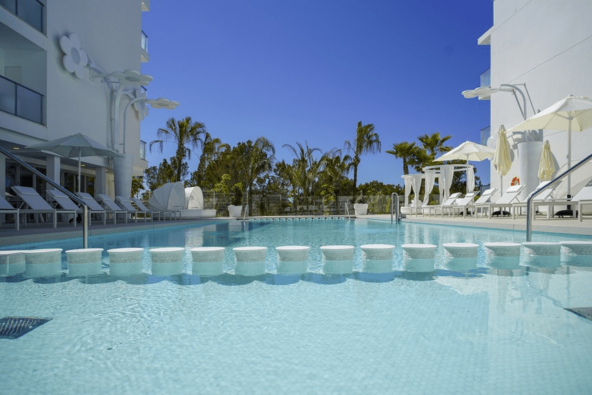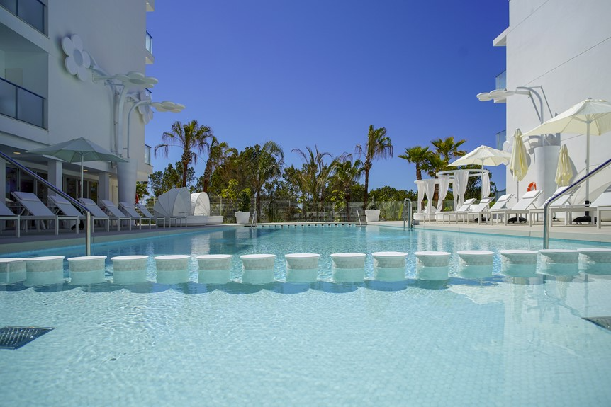 A pocos metros de la playa de Es Pujols, en el entorno del Parque Natural de Ses Salines, Five Flowers Hotel & Spa es el epítome del lujo relajado en clave 5* en la isla balear. El mobiliario de diseño 60’s y 70’s, el blanco como protagonista en contraste con vibrantes notas de color, los materiales naturales que maximizan el efecto de la brisa en espacios indoor y outdoor de líneas envolventes y vanguardistas; todo evoca libertad, desconexión y felicidad.