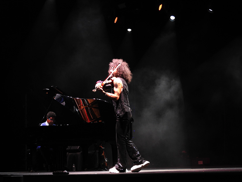 I així ha estat. Ara és un gran comunicador, ben bé un monologuista que aconsegueix copsar l’atenció del públic -i fent-los riure en més d’una ocasió- explicant històries de la seva vida. Un recorregut musical que ha començat amb la peça composada per ell mateix titulada Bourdj Hammoud, el nom del barri armeni on vivien els seus avantpassats a Beirut (Líban), i on ell va passar els primers anys de la seva infantesa abans d’emigrar per la guerra. El virtuós violinista nacionalitzat espanyol s’ha mostrat agraït per “trobar-nos aquesta nit davant de vosaltres, en un concert on s’han pres totes les mesures de seguretat”.