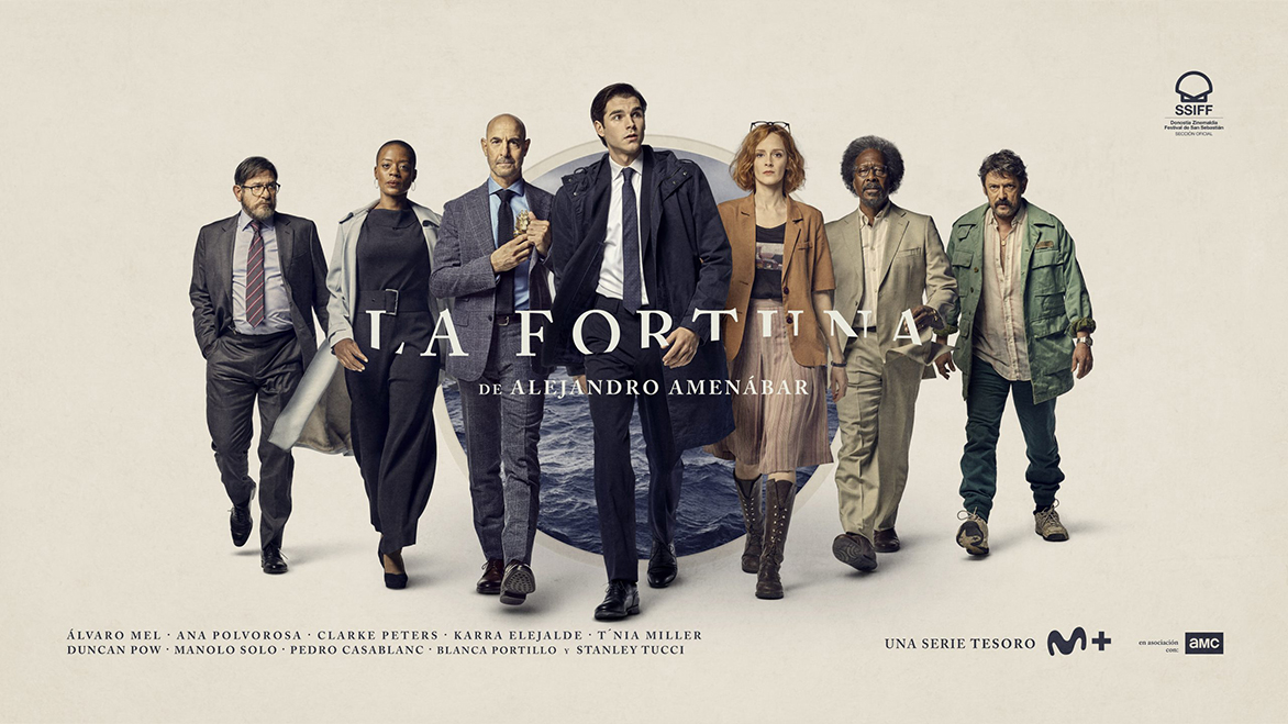 El ganador del Oscar® Alejandro Amenábar está al frente de este ambicioso proyecto internacional protagonizado por Álvaro Mel, como el joven diplomático Álex Ventura, y Ana Polvorosa, en el papel de Lucía, su compañera de trabajo y aventuras. ‘La Fortuna’ cuenta además en su reparto con reconocidos rostros populares del cine y la ficción norteamericana como el nominado al Oscar® por ‘The Lovely Bones’ Stanley Tucci, en el papel del cazatesoros Frank Wild; Clarke Peters (‘Da 5 Bloods: Hermanos de armas’´), como el abogado Jonas Pierce y T’Nia Miller (‘La maldición de Bly Manor’), como la abogada Susan McLean. El elenco principal se completa con Karra Elejalde, Manolo Solo, Blanca Portillo o Pedro Casablanc, entre otros.