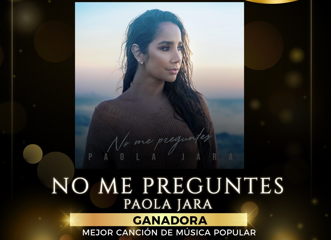 PAOLA JARA fue reconocida en la categoría de «MEJOR CANCIÓN DE MÚSICA POPULAR’ con el éxito ‘NO ME PREGUNTES’, un tema que fue lanzado en enero del presente año y con el cual ratifica su poder musical a nivel nacional e internacional.