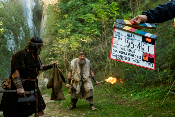 El director de Errementari, Paul Urkijo, está en pleno rodaje de «IRATI», su segundo largometraje, en diferentes localizaciones de Araba, Gipuzkoa, Bizkaia, Navarra y Huesca. Inspirado en el cómic El ciclo de Irati, que está ambientado en la oscura etapa histórica del siglo VIII, el rodaje del film comenzó a finales del mes de septiembre.
