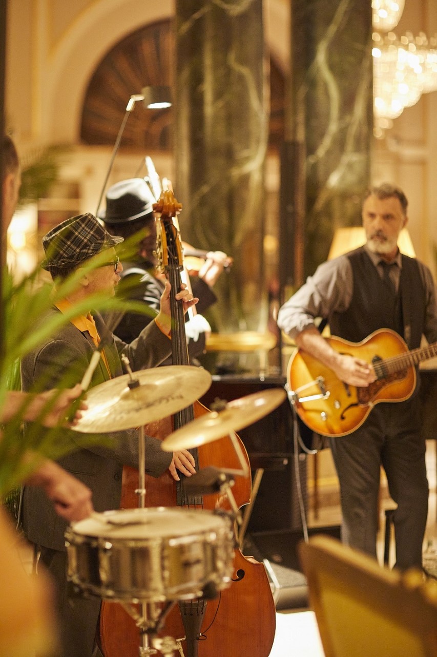 La música será también protagonista este otoño en el hall de El Palace. Blues, jazz, swing, rock, country y mambo, entre otros muchos ritmos clásicos y contemporáneos, animarán las noches de los jueves, viernes y sábados de 20:00 a 22:00h. Por este privilegiado espacio pasarán grupos como Room 69, Los Carosones, The Summer Lovers, The Spinoff, Chino & The Sharps, Enma Fernandez Quartet, The 4 Shots o Nika Mills. Recomendable reservar para cenar en hall@hotelpalacebarcelona.com.
